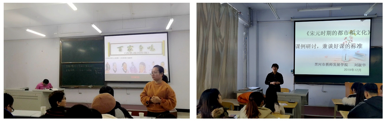 为推动历史师范专业认证工作的开展,帮助学生明确教师资格证书面试的环节和内容,12月20日,文化旅游学院历史系聘请黑河市教师发展学院的资深教研员刘淑华到学院做了一场别开生面的讲座。刘老师以国赛一等奖的获奖者大庆十四中学杨晓玉老师的获奖课程《宋元时期的都市和文化》为例,从教学目标、教师的教、学生的学和教学效果四个方面,围绕着如何把“以教师的教为主”转变为“以学生的学为主”进行了精彩的讲解。