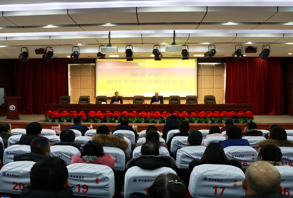 本网讯(特约记者 王琳 摄影 李佳)12月27日下午,我校在求知楼报告厅召开2019年党员干部警示教育大会,校长贯昌福,党委副书记张焕强,副校长车永宏、丛喜权出席会议,全校副科级以上干部、副高级以上职称教师、各学院辅导员和班主任参加会议。会议由纪委书记董贵杰主持。