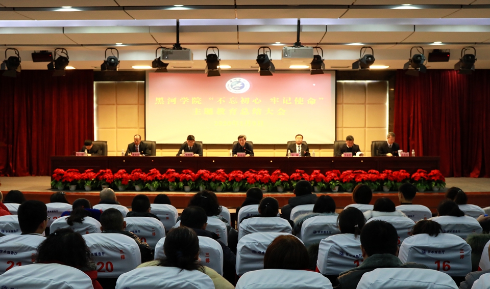 本网讯(记者 关月)按照中央、省委统一部署和学校党委的安排,1月9日,黑河学院“不忘初心、牢记使命”主题教育总结大会在求知楼学术报告厅举行。会议全面总结我校主题教育开展情况,深入学习贯彻习近平总书记重要讲话和省委会议精神,巩固和拓展主题教育成果,部署落实全面从严治党要求。