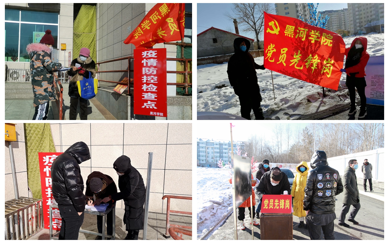 本网讯(记者 关月)为深入落实中央和省委决策部署、积极配合黑河市委市政府履行属地防疫责任,学校党委在积极按照省教育厅要求做好应对新型冠状病毒感染的肺炎疫情防控工作同时,协助黑河市和爱辉区加强社区防控工作力量,把坚决打赢疫情防控阻击战作为当前首要政治任务,以实际行动践行初心和使命。我校17个党总支和1个直属党支部党员积极响应党委号召,迅速成立两个临时党支部,300余名党员干部教师按照学校党委和黑河市防疫指挥部要求,挺身而出,亮明身份,主动加入黑河市区小区网格化封闭值守志愿服务一线,用尽职尽责树立起“为人师表、立德树人”新风尚,用实际行动发挥共产党员的先锋模范作用,让党的旗帜在疫情防控战场上高高飘扬。