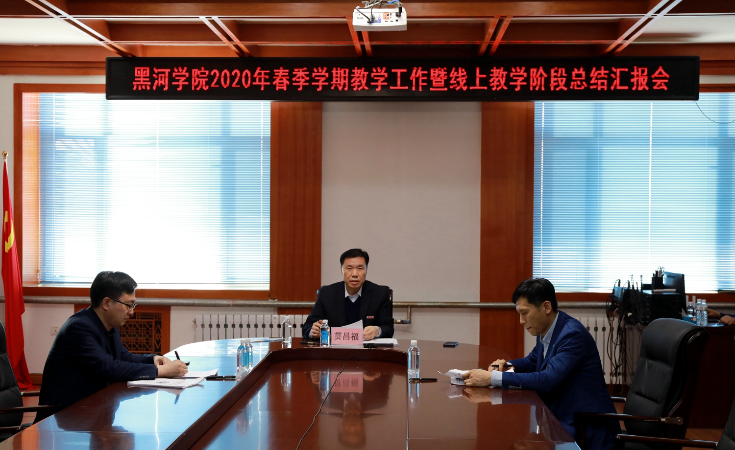 校长贯昌福在总结讲话中,对各学院教师迎难而上、勇于担当,积极做好疫情防控期间线上教学工作表示高度肯定,向奋战在教育教学一线的广大教师、干部表示衷心的感谢。针对继续做好线上教学工作,他强调,全校上下要进一步提高政治站位,保障线上教学平稳运行;要进一步增强担当意识,实施精细化管理,做到信息收集要快、学情分析要准、活动效率要高;要及时总结经验,做好线上教学改革,推动教育教学理念创新,切实提高教育教学质量,推动学校内涵发展;要统筹安排部署,稳步推进年度教育教学重点工作,确保一起谋划、一起研究、一起推进、一起部署,确保疫情防控和教育教学工作两手抓、两手硬。