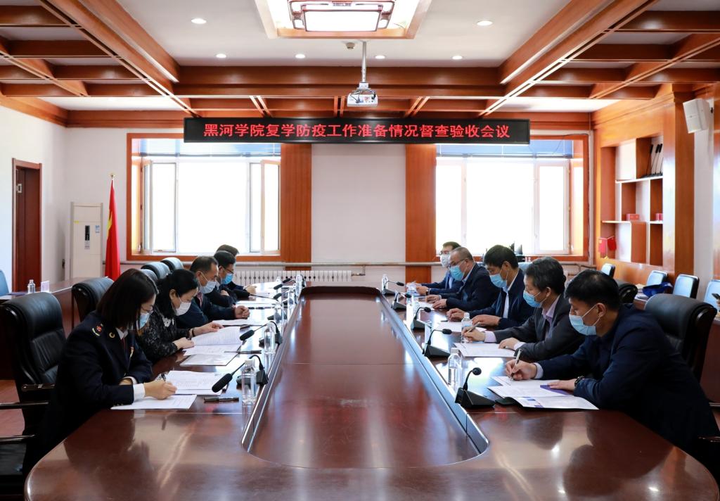 督查组实地查看了校医院、友谊楼、稻香园餐厅、10号学生公寓楼、外国语学院教室等校内疫情防控重点区域;在明德楼三楼会议室召开黑河学院复学防疫工作准备情况督查验收会议,仔细查阅了学校疫情防控工作方案、应急处置方案等有关材料。