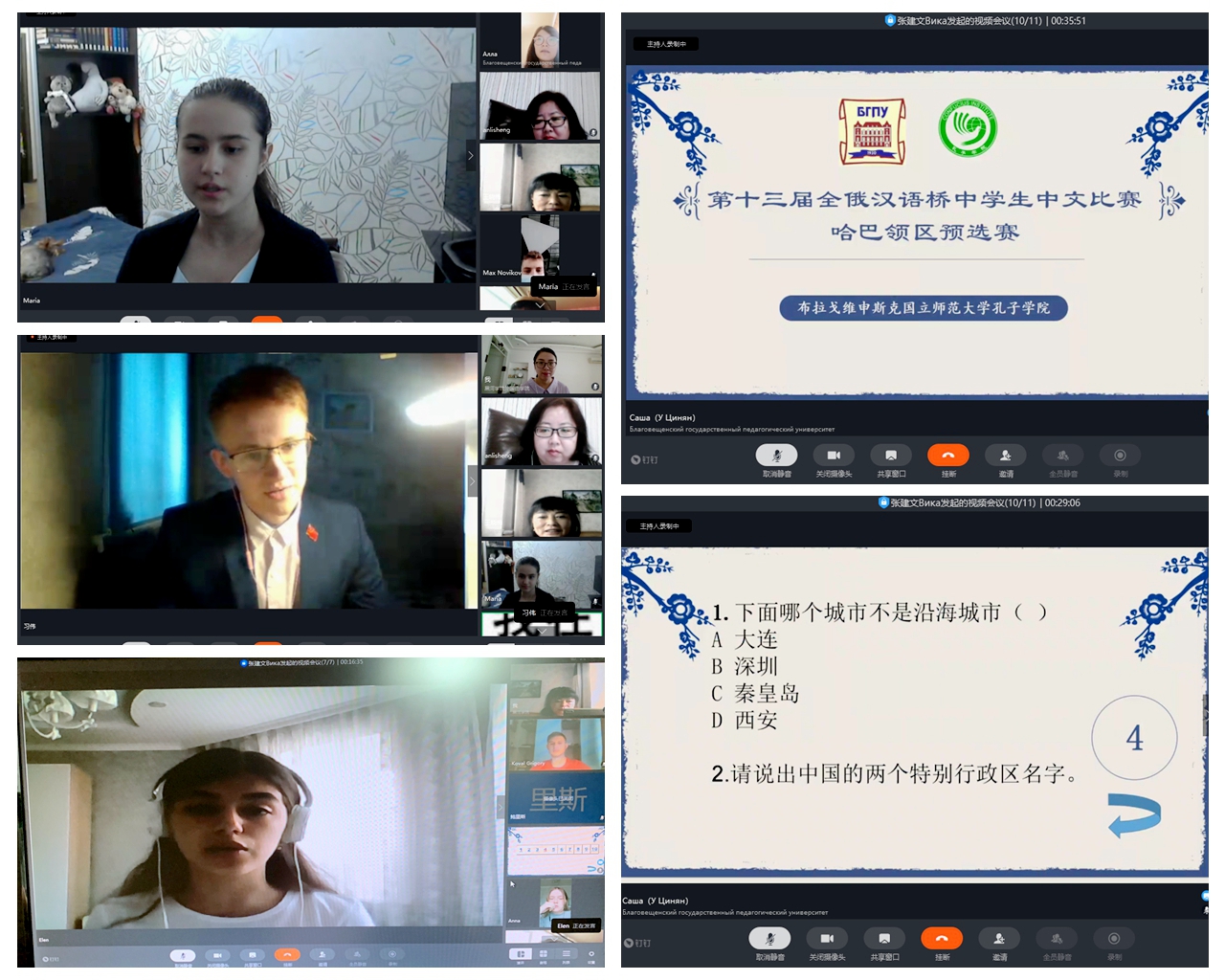 本次比赛分为线上自我介绍、中俄知识问答、看图说话三个环节;线下主题演讲、才艺表演视频作品上报两个环节。经过激烈角逐,习伟、安德烈两位选手在16名中学生中脱颖而出,最后获得代表哈巴领区参加7月18日的全俄“汉语桥”中学生中文比赛资格。