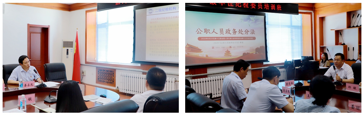 本网讯(特约记者 王琳)7月8日下午,校纪委在明德楼三楼会议室举办了二级单位纪检委员培训班。本次培训主要内容是《学校基层纪检干部监督执纪工作应知应会》《中华人民共和国公职人员政务处分法》。全校18个党总支(直属党支部)的纪检委员和纪检监察处全体工作人员参加了培训学习。党委委员、纪委书记、省监委驻黑河学院监察专员董贵杰参加并主持培训活动。