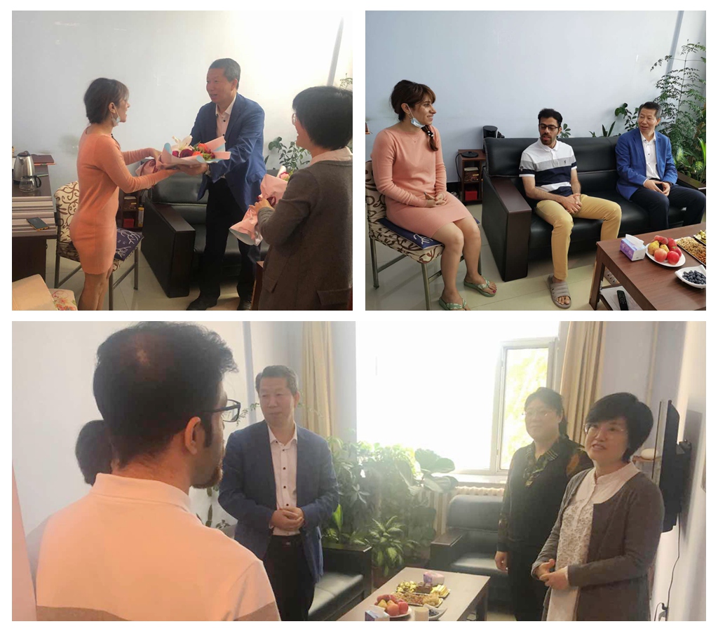 9月10日上午,在第36个教师节来临之际,副校长丛喜权在国际交流合作处负责人的陪同下,来到友谊楼看望外国文教专家,为因疫情特殊时期没有回国的伊朗籍外国文教专家莫杰塔巴夫妇送去节日的问候和真挚的祝福。丛校长感谢外国文教专家们在学校的辛勤工作,详细了解了外教们在学校的工作、生活情况及相关的需求。已经在我校工作四年的莫杰塔巴对学校送来的礼物感到非常高兴,他们感谢学校对他们的关怀,感谢国际交流合作处为他们所做的大量工作和周到服务,表示在今后的工作中一定会尽职尽责,努力的工作,为我校的国际教育合作发展贡献一份自己的力量。