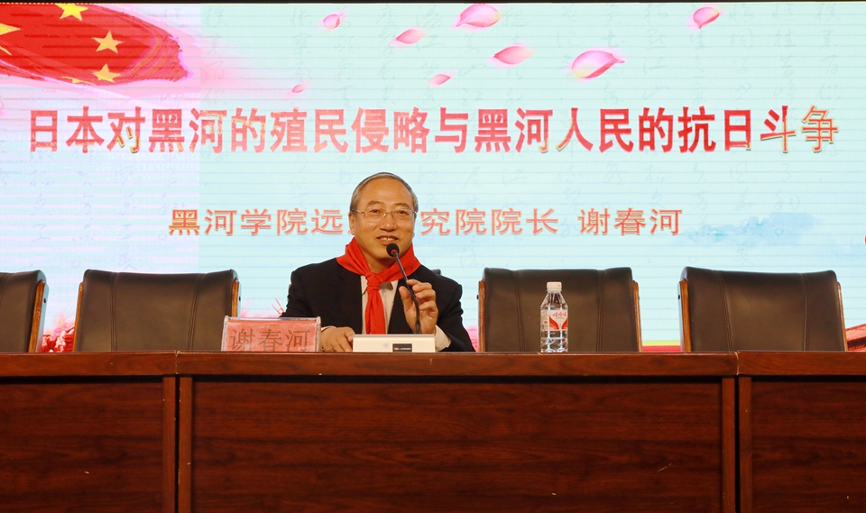 会后,我校远东研究院院长谢春河教授为附属小学五年级学生讲授“日本对黑河地区的殖民侵略与黑河人民的抗日斗争”,与会领导共同参观了我校与附属小学共建的“红色长廊”爱国主义教育和国防教育展示基地。