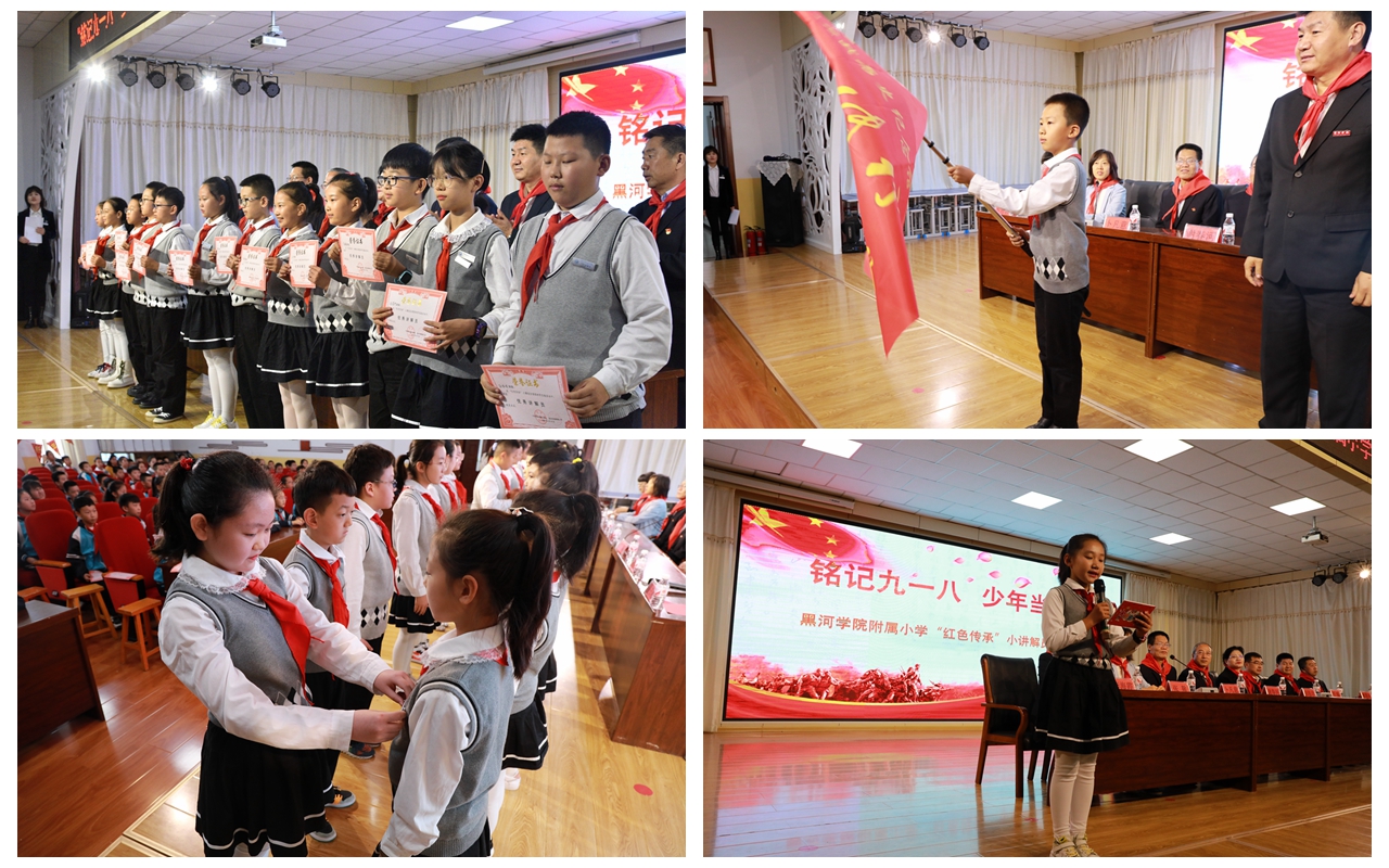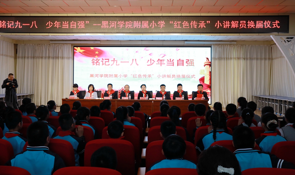 本网讯(特约记者 柳青 摄影 周春晓 崔叶瞳)9月18日上午,我校中苏抗战历史纪念馆与附属小学共同举办铭记九一八•少年当自强——“红色传承”小讲解员换届仪式,黑河市档案馆馆长田桂珍,爱辉区委常委、宣传部部长刘城,黑河学院远东研究院院长谢春河及市档案馆、爱辉区教体局、黑河学院附属小学领导、中苏抗战历史纪念馆负责人出席仪式。黑河学院附属小学第三、四届小讲解员参加会议。会议由附属小学副书记李海霞主持。