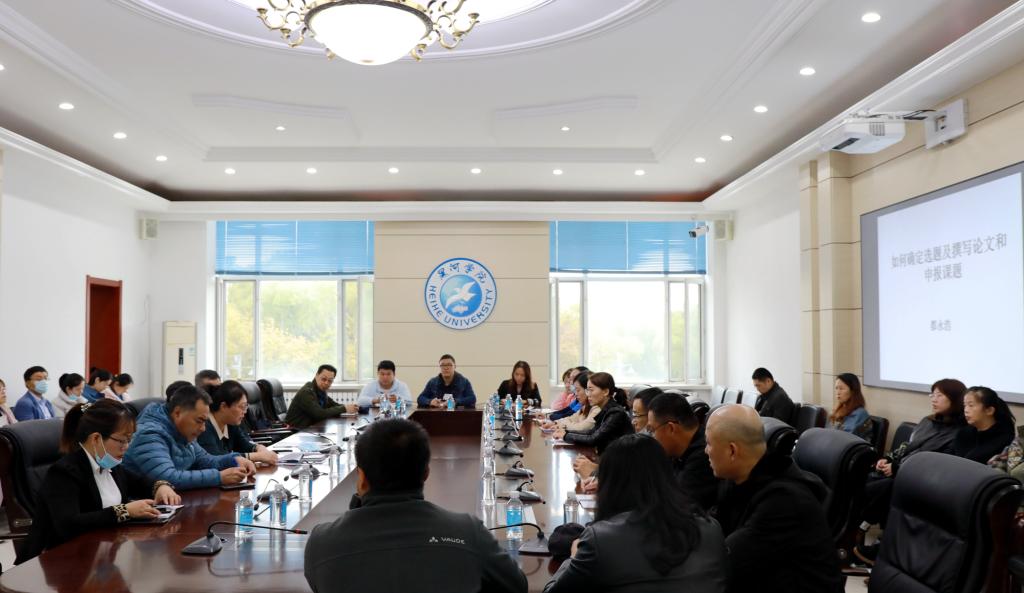 本网讯(特约记者 李迎春 摄影 周春晓)为进一步提高教师学术论文写作水平和课题申报材料论证质量,9月24日下午,学校特邀原黑龙江民族职业学院院长、《黑龙江民族丛刊》主编、博士生导师都永浩教授,来校作“关于如何确定选题及撰写论文和申报课题”专题讲座。学校党委委员、副校长丛喜权及各二级学院50余名教师参加讲座。讲座由科研处处长刘昱洁主持。
