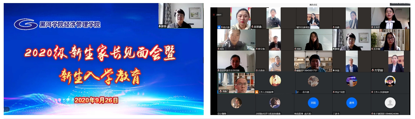 本网讯(特约记者 齐黎丽)为帮助2020级新同学提早熟悉学校和学院情况、适应校园学习生活环境,9月26日上午,经济管理学院利用腾讯会议召开了2020级本科新生家长见面会暨新生入学教育。经济管理学院院长谢慧、党总支书记孙磊、副院长翟立强、学团办主任齐黎丽及各系主任、教学秘书、辅导员、新生班主任出席见面会,共同为2020级本科新生及家长答疑解惑、启明领航。会议由新生辅导员康瑛泽主持。