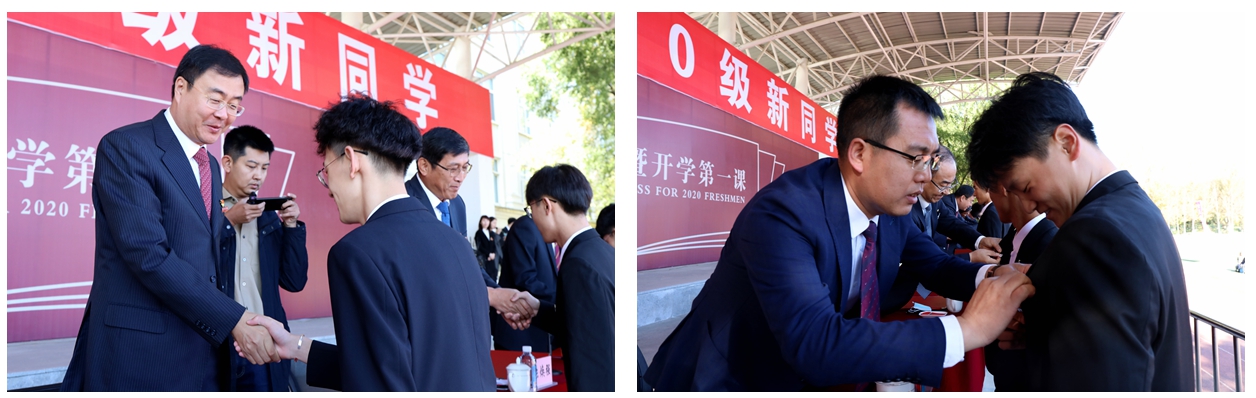 作为开学典礼的重要环节,与会领导为新生代表佩戴校徽,赋予新生黑河学院人的身份及承载起黑河学院艰苦创业、自强不息、创新发展、育人戍疆的黑河学院精神,承载着北疆人的使命和光荣。开学典礼在齐唱校歌中圆满落下帷幕。