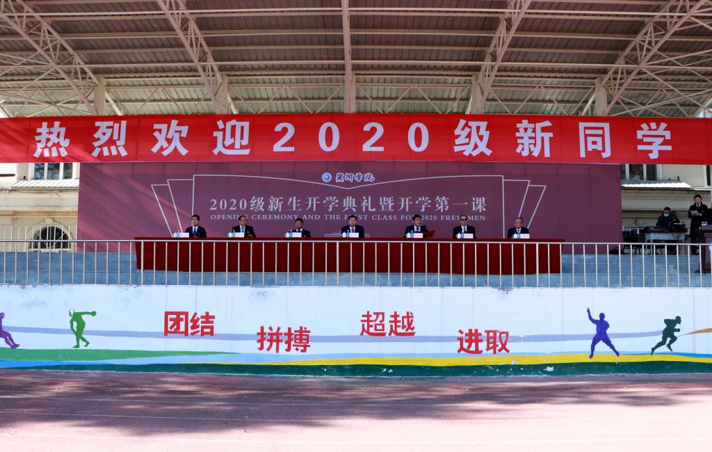 党委书记王刚在讲话中介绍了黑河的基本情况,黑河学院的发展历史、办学理念和办学特色,并以教授、学者、长者的情感、视角,以“明德、笃学、励志、求真”的校训为题,为2020级全体新生上了“开学第一课”,帮助刚刚迈入大学校门的新生明确方向,树立目标,扬帆远航。