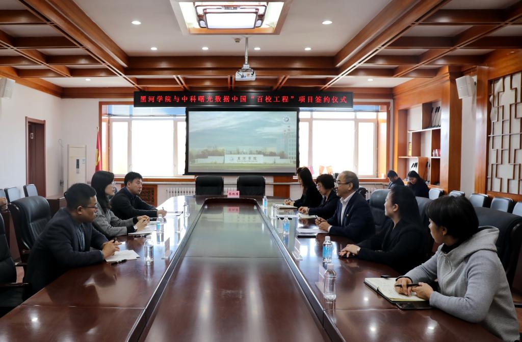 在观看了我校《特色鲜明转型发展中的黑河学院》宣传片后,林英副总经理简要介绍了曙光信息产业股份有限公司的发展概况、企业优势、战略定位、核心技术及未来校企合作思路、发展前景,希望在黑河学院大投入、大发展之际,紧紧围绕地理优势,通过合作项目的建立,整合学校、企业亮点,不断迭代升级合作,落实各方面项目和产业链建设,建成一个基于大数据应用生态的网络资源,提升人才培养,提高应用科研能力,共同服务于社会、区域大数据产业发展。