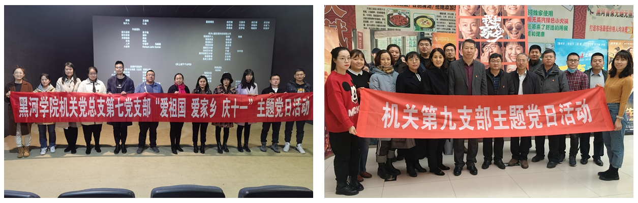 为引导党员筑牢理想信念之魂,不忘初心、牢记使命,时刻保持政治上的清醒坚定,提高党员干部们的思想政治素质,大力弘扬家国情怀和爱国主义精神,机关党总支第七和第九党支部分别于10月9日、28日,组织党员观看影片《我和我的家乡》。该片通过讲述中国五大地域的家乡故事,抒发人们的家国情怀,展示脱贫攻坚成果,决胜全面建成小康社会。观影结束后,大家纷纷表示,家是最小国,国是千万家,国家富强,民族复兴,人民幸福,不是抽象的,最终要体现在千千万万个家庭都美满幸福上,党员们都暗下决心要更努力工作,为学校发展建设、为构建和谐幸福校园贡献力量。