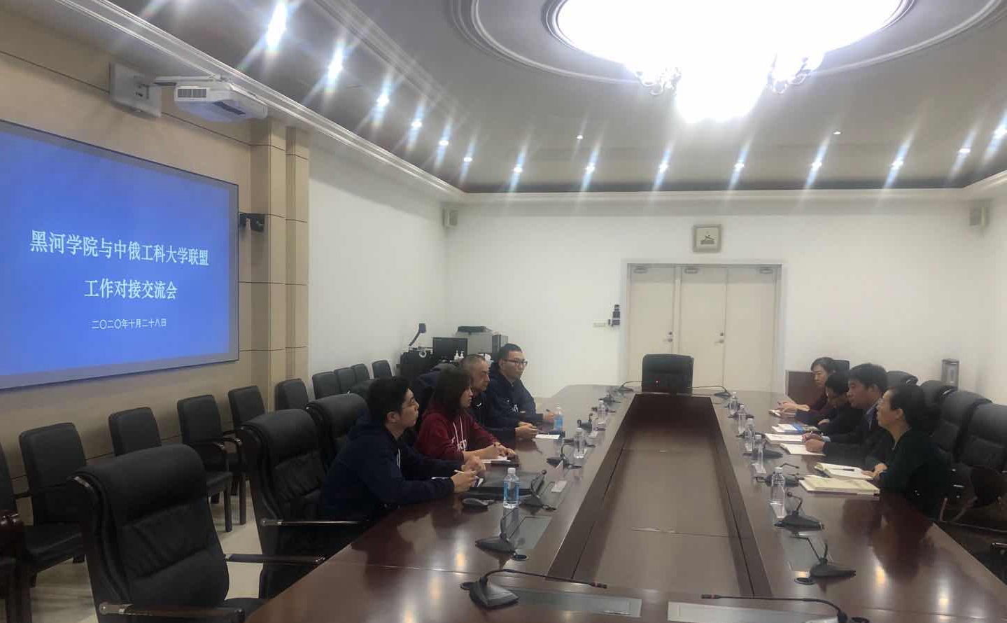 10月28日下午,在明德二楼会议室,黑河学院国际交流合作处郑羽处长详细介绍了学校近年来对俄交流合作情况。我校作为中俄工科大学联盟14所观察员院校之一,凭借自身对俄合作特色及地缘优势助力联盟建设发展的诚挚愿望,同时希望通过“中俄工科大学联盟”与更多中俄高校开展更加全面、广泛、深入的实质性合作,相互学习借鉴,共同发展提高。中俄工科大学联盟中方常设秘书处处长、哈尔滨工业大学国际教育学院院长顾建政等4人与我校国际交流合作处、外国语学院、黑龙江省TRIZ理论研究所、国际教育学院负责人就依托联盟开展国际交流工作进行了工作交流。初步商定在俄语语言培训、大学生科技创新、来华留学教育方面开展交流合作,整合联盟资源,发挥院校优势,抢抓中俄科技创新年契机,推动高校人文交流。