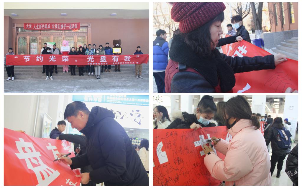 本网讯(特约记者 张微)为积极响应习近平总书记“厉行节约 反对浪费”的重要指示精神,大力弘扬中华民族勤俭节约的传统美德,培养健康文明的餐饮习惯,11月9日,文化旅游学院在沁香园餐厅举行“节约光荣 光盘有我”系列活动启动仪式。