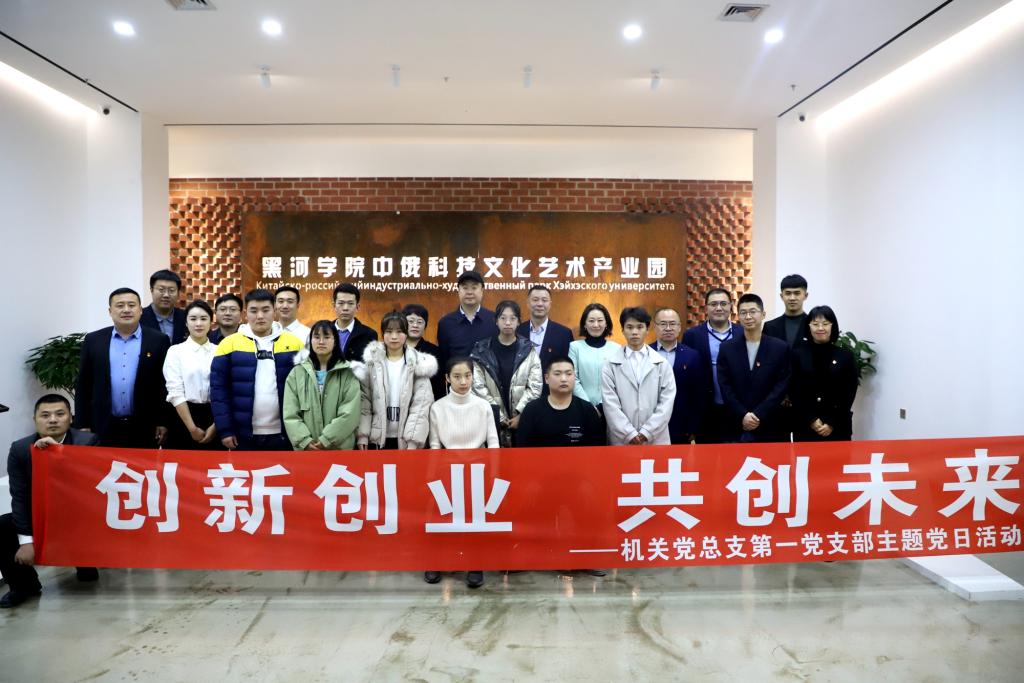 本网讯(特约记者 张航 摄影 刘韵狄)为加强服务型党支部建设,推进教育精准脱贫,帮助家庭经济困难学生树立创新、创业意识,11月17日,机关党总支第一党支部全体党员及学生代表来到大黑河岛黑河学院中俄科技文化艺术产业园开展“创新创业 共创未来”主题党日活动。
