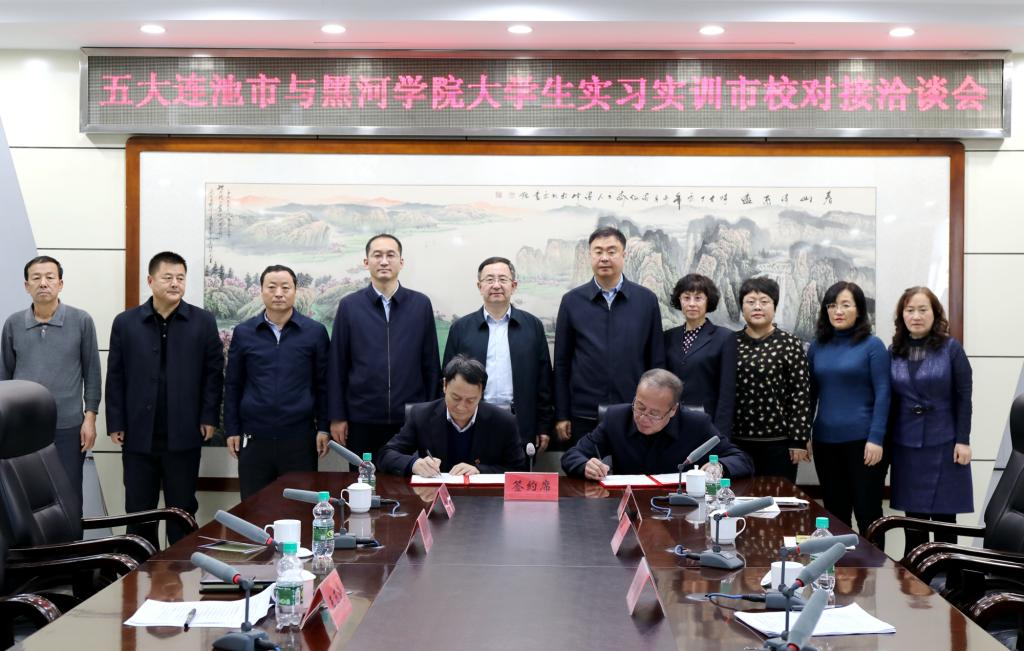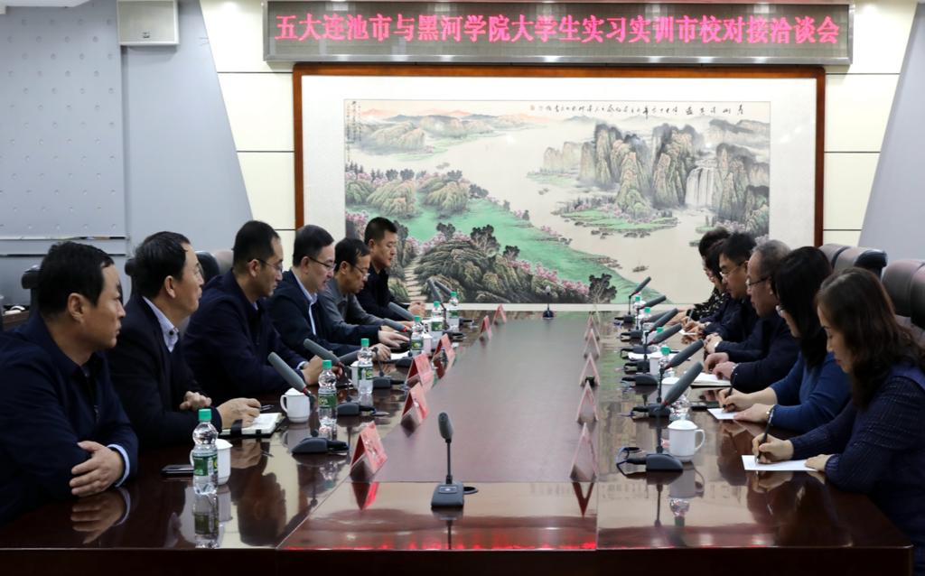 五大连池市市委书记王玉涛代表五大连池市市委、市政府对我校来五大连池市调研考察洽谈表示热烈欢迎,对黑河学院长期以来对五大连池市的关心和支持表示感谢。他指出,黑河学院作为黑河地区唯一的高校和区域经济发展的重要人才库,与五大连池市联系紧密,特别是在人才培养和技术合作上给予五大连池市很大支持和帮助。市校合作,一头连着就业,一头连着人才,事关高等教育可持续发展,关乎地方经济社会发展潜力,五大连池市要以人才引进为核心点开展市校合作,以方式创新为支撑点推进市校合作,以平台建设为转化点强化市校合作。五大连池市将认真总结近期的实习实训经验,在政策扶持、基地建设、资源整合和服务保障上下功夫,在专业人才对接、培养模式创新、“双导师”培养机制完善上多加研究,全方位建设好市校合作这个平台,努力实现市校合作共赢发展。