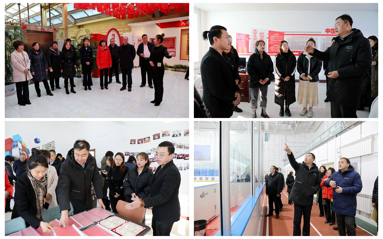 在北安,调研组一行来到北安市商圈党群服务中心产业发展训练营、冰球馆冰雪体育训练营、职教中心职场能量训练营实地调研,看望慰问实习实训大学生和在北安市冰雪体育训练营集训的黑河学院冰球队员。