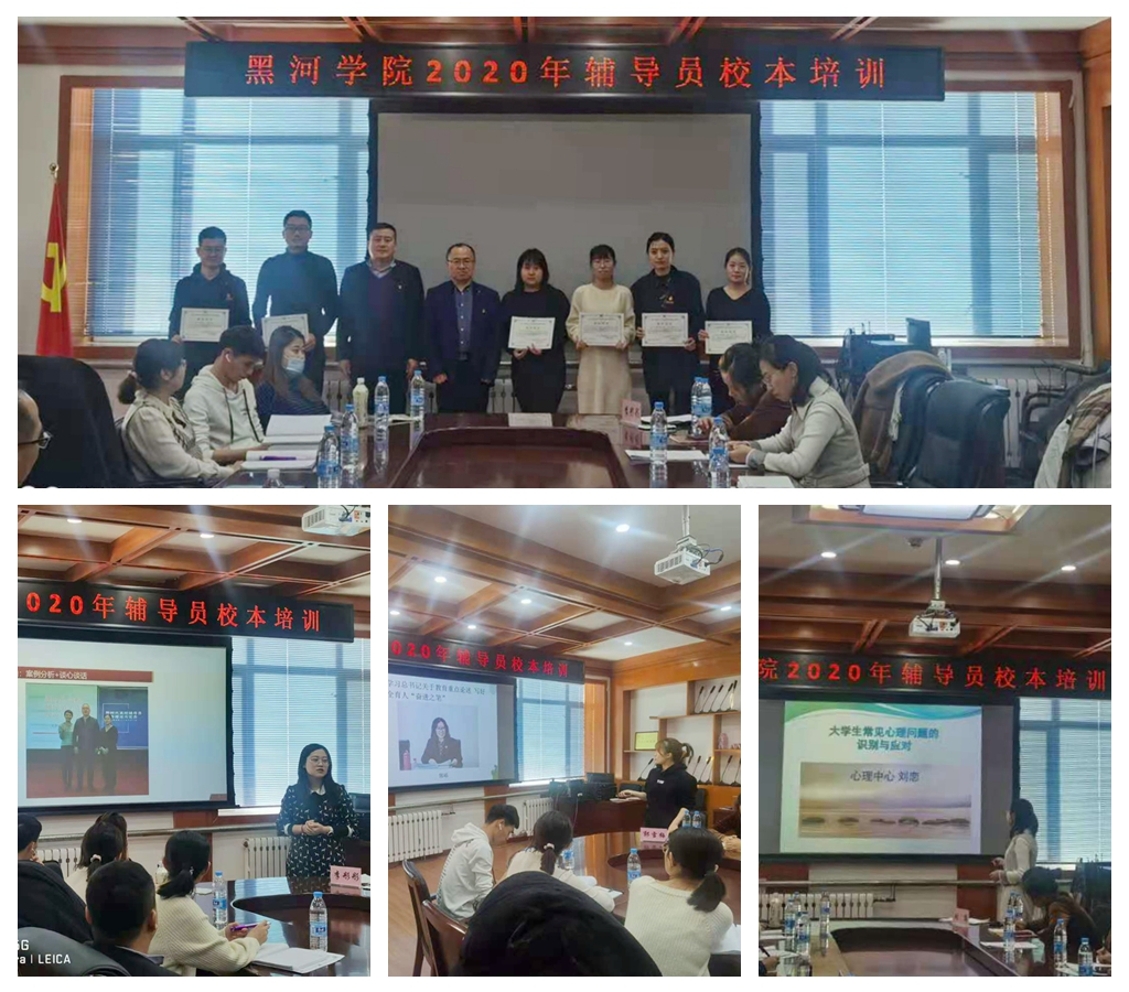 会上,学生工作部相关负责人为6位新任职辅导员颁发了2020年黑龙江省普通高等学校新任职辅导员上岗培训班结业证书;理学院李彤彤、体育学院郭雪梅二位老师结合自身的工作从理论知识和实践成长等方面与大家分享了参加全省第44期辅导员岗位培训班、第45期全省骨干辅导员培训班的心得体会;心理健康中心刘恋老师作了题为“大学生常见心理问题的识别及应对”的专题讲座,详细讲解了抑郁症的早期识别及高校学生抑郁障碍的应对方法、心理危机的常见预兆等方面内容,使辅导员们进一步提高了应对大学生心理健康教育的工作水平,明确了学生早期抑郁症的防止与处理方法。