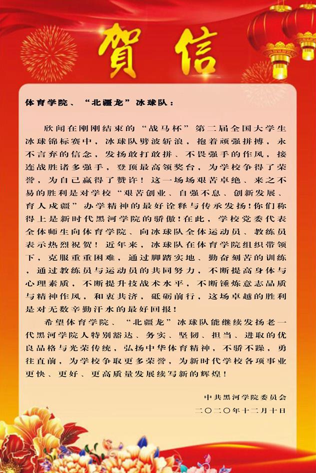 热烈祝贺我校“北疆龙”冰球队勇夺