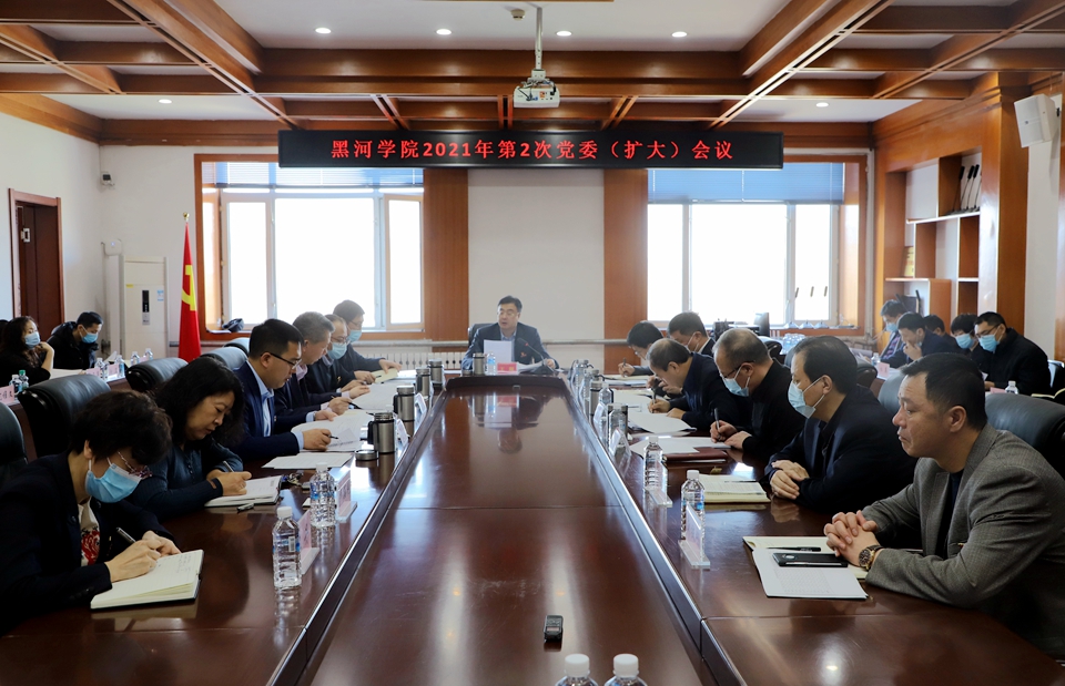 会议讨论了《黑河学院2021年党政工作要点》《黑河学院2021年中层干部大会校长工作报告》,广泛征求了各单位负责人对民生实事意见,确定了学校下一步民生工程的重点内容,会议还讨论了其他事宜。