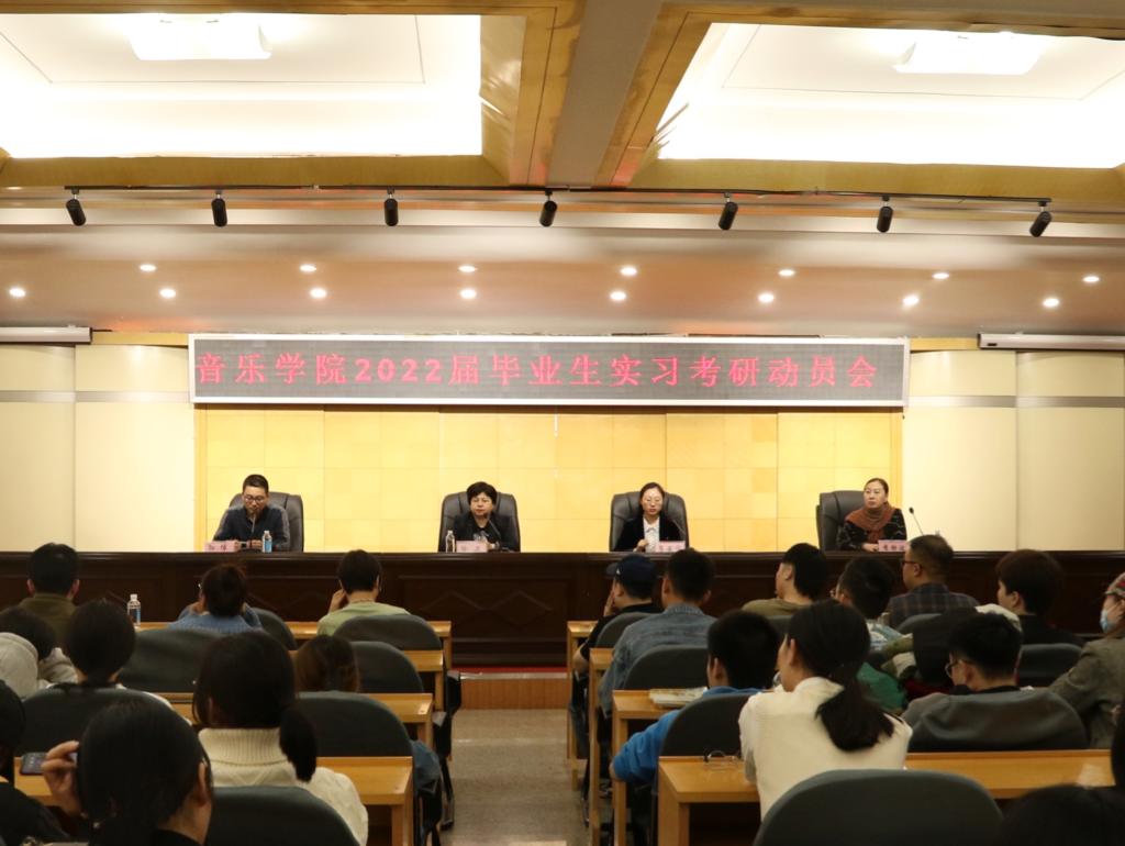 本网讯(特约记者 孙博)为引导学生做好实习准备,增强学生考研信心,引导同学们科学备考,4月2日,音乐学院在明德楼五楼多功能厅召开了2022届毕业生实习考研动员大会,学院党政班子成员、教师代表及2018级全体学生参加会议。
