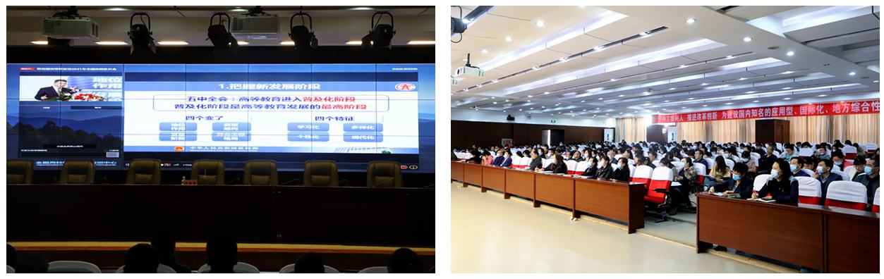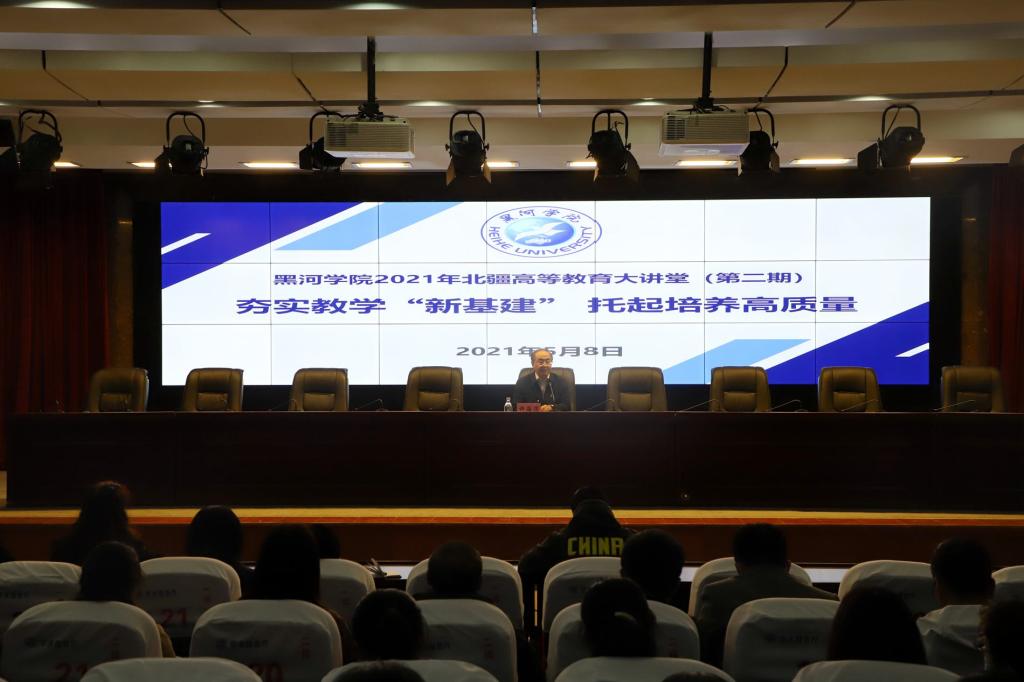 本网讯(特约记者 李娟 摄影 周春晓 陈慧)5月8日下午,学校在求知楼报告厅召开黑河学院2021年北疆高教大讲堂第二期专题讲座,集中收看学习教育部高等教育司司长吴岩题为《夯实教学“新基建” 托起培养高质量》的专题讲座。副校长许海深,教务处、高教研究与教学质量评估中心、学校督导室全体人员及各学院教师代表300余人参加学习。会议由副校长许海深主持。