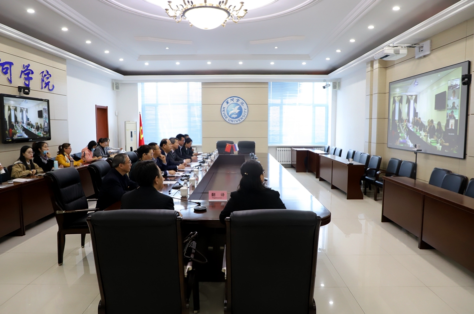 本网讯(记者 赵宇)5月11日,由中国黑河学院、俄罗斯布拉戈维申斯克国立师范大学联合主办,我校外国语学院、远东研究院、黑龙江省俄罗斯东欧中亚学会俄罗斯学研究分会、黑龙江省中俄历史与文化学术交流基地承办的第十一届“中俄合作历史与前景”学术研讨会在线上俄罗斯zoom网络平台顺利召开。黑河市副市长张瑾忠,省社科联党组成员、副主席王宏宇,省教育厅科技处处长刘兆国,复旦大学国际问题研究院副院长冯玉军,省俄罗斯东欧中亚学会副会长钟建平,我校副校长丛喜权及外国语学院、远东研究院、科研处负责人与相关专业教师代表在明德楼二楼会议室参加会议。