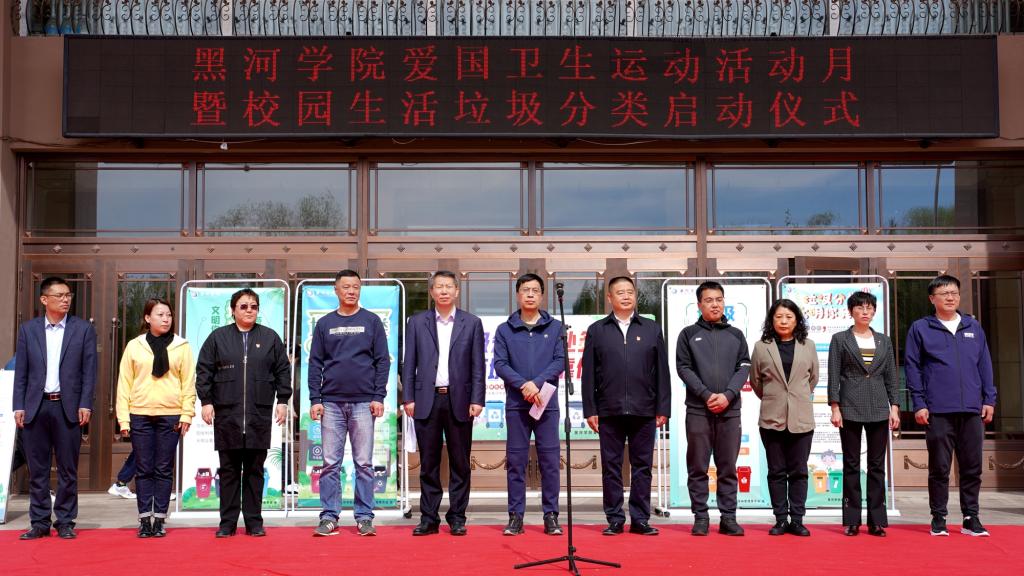 本网讯(记者 关月)为引导师生培养文明健康、绿色环保生活方式,建立起垃圾分类的长效机制,切实筑牢疫情常态化防控的防线。5月19日学校组织开展第33个爱国卫生活动月暨校园生活垃圾分类启动仪式,黑河市城市管理综合执法大队副支队长吴公海、黑河市爱国卫生健康促进中心主任王文英,我校校长杨敬民、副校长丛喜权及各处室负责人、各二级学院党总支书记、辅导员和教职工党员志愿服务队志愿者、学生志愿者及社团组织代表参加启动仪式。