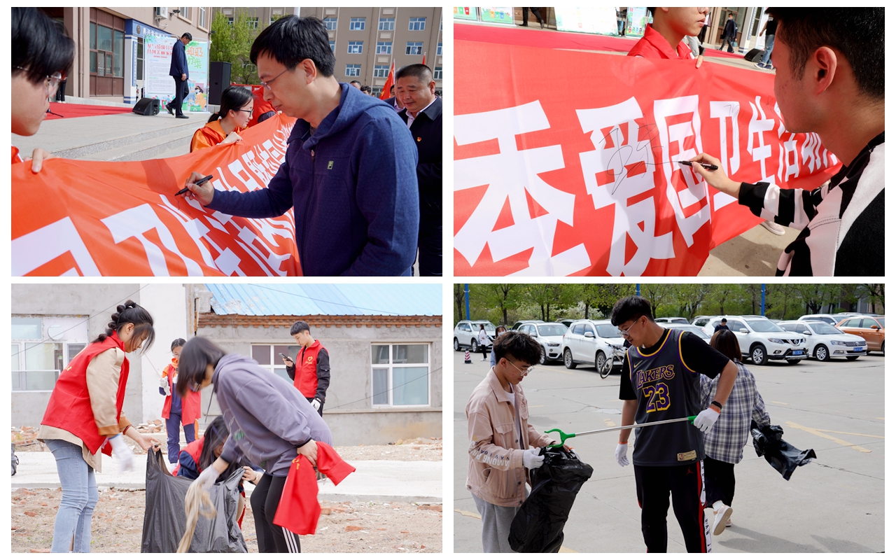 活动中,校长杨敬民宣布黑河学院第33个爱国卫生活动月暨校园生活垃圾分类活动正式开始;学生代表翟伟楠宣读倡导践行文明健康绿色环保生活方式倡议书;全体师生在条幅上签字留念,并纷纷拿起清扫工具,在校园内开展卫生清扫活动。