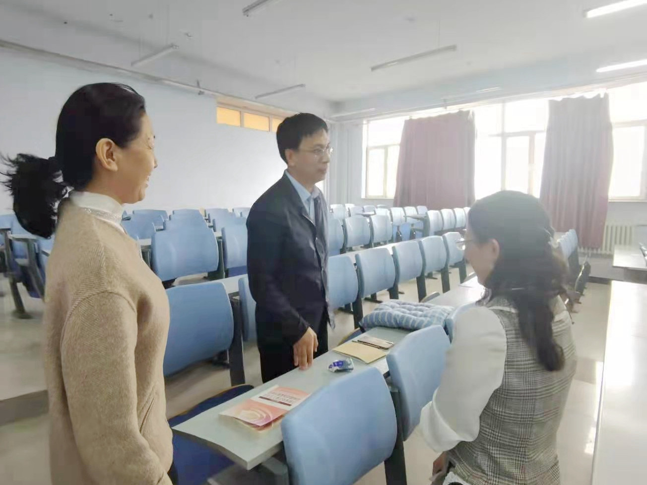 课堂上,他们专注听取教师授课内容,观察学生听课反应,填写听课记录;课后,与授课教师亲切交谈,就进一步提升思政课的教学内容、教学方法、课堂管理与授课教师进行深入交流,就如何发挥好思想政治理论课在思想政治教育中的主渠道作用,在思政课上把故事讲精彩,把道理说通透,有效增进学生们的理论认同、政治认同、情感认同提出了意见和建议。