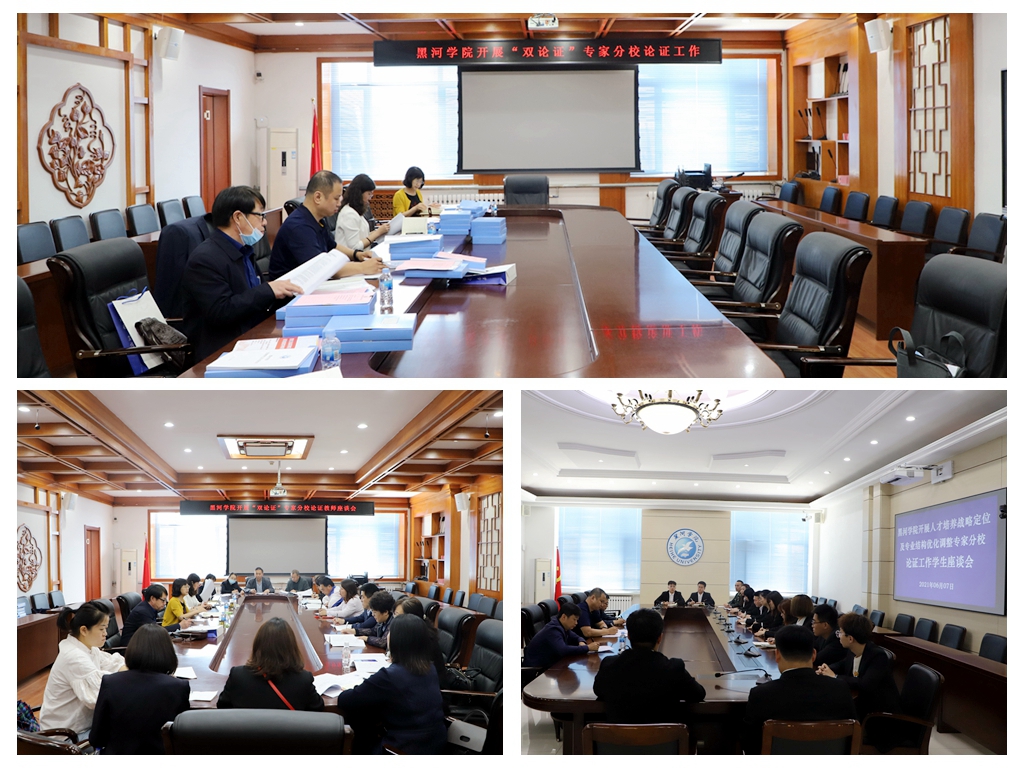 本网讯(记者 关月 摄影 周春晓)6月7日,按照黑龙江省教育厅对地方属普通高校人才培养战略定位及专业结构优化调整专家分校论证(以下简称“双论证”)工作的部署,由哈尔滨师范大学副校长李庆霞带队的专家组一行6人对我校“双论证”工作开展情况进行考查指导。校长杨敬民、副校长许海深在明德楼二楼会议室同专家组召开汇报会,相关部门和各二级学院负责人参加会议。