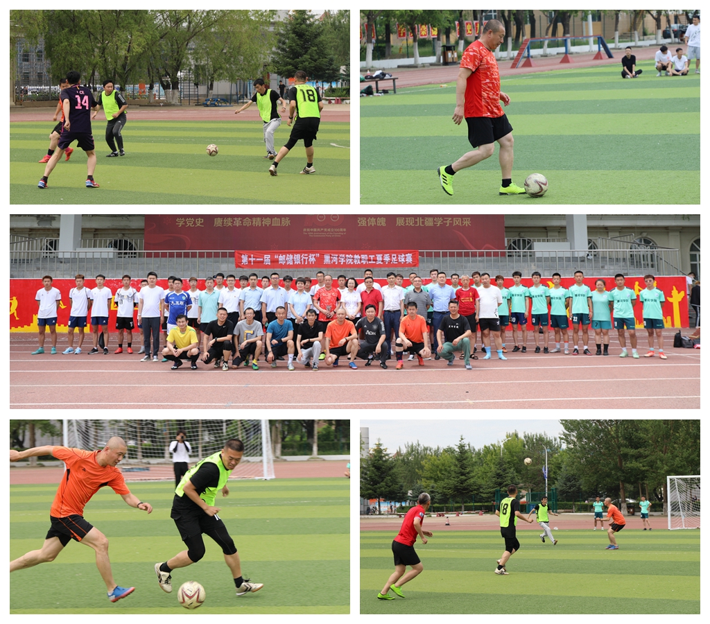 为隆重纪念和庆祝中国共产党成立100周年,回顾党的光辉历程,讴歌党的丰功伟绩,进一步激发教职员工干事创业新热情,提升政治意识、大局意识和集体意识,6月23日,由校工会主办、教职工足球协会承办的“征程始于足下喜迎建党百年”邮储银行杯第十一届教职工夏季足球赛顺利举行。本次比赛采取单循环赛制,足球协会30余名教职工组成了三支队伍参赛,其中最大年龄56岁。本次比赛各参赛队准备充分,赛前积极训练,合理安排出场队员,队员们表现出极大热情,在赛场上发挥出了较高水平,不仅切磋了球技,增进了友情,同时也展示了教职工健康快乐、积极向上、顽强拼搏的风采。大家纷纷表示,将以更饱满的状态投入到工作和生活中,立足本职岗位作贡献,以优异成绩庆祝建党百年。