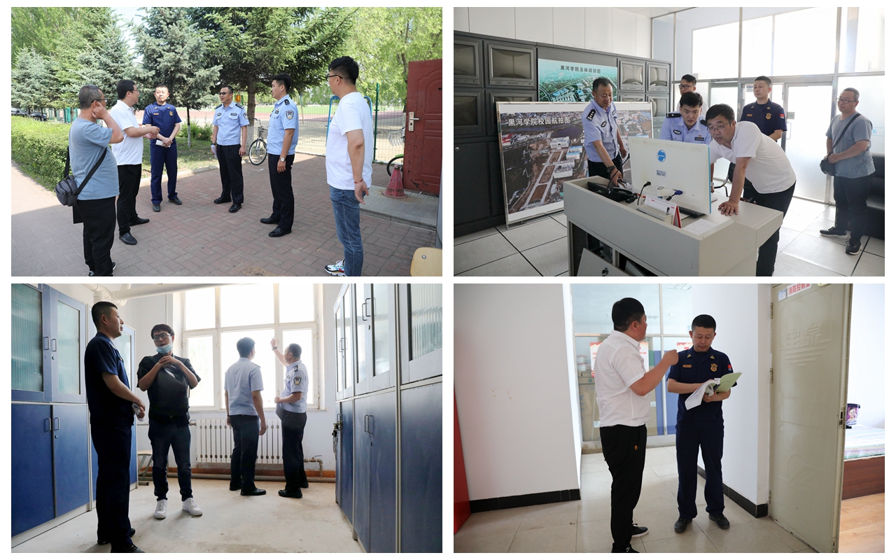 本网讯(记者 赵宇 摄影 陈慧)按照省教育厅全省校园安全大检查工作要求,6月23日,黑河市人民政府督学张保与黑河市公安局、市消防救援支队、市城管执法局、合作区公安分局一行8人到校检查校园安全工作,副校长车永宏与后勤管理处、保卫处负责人陪同检查。