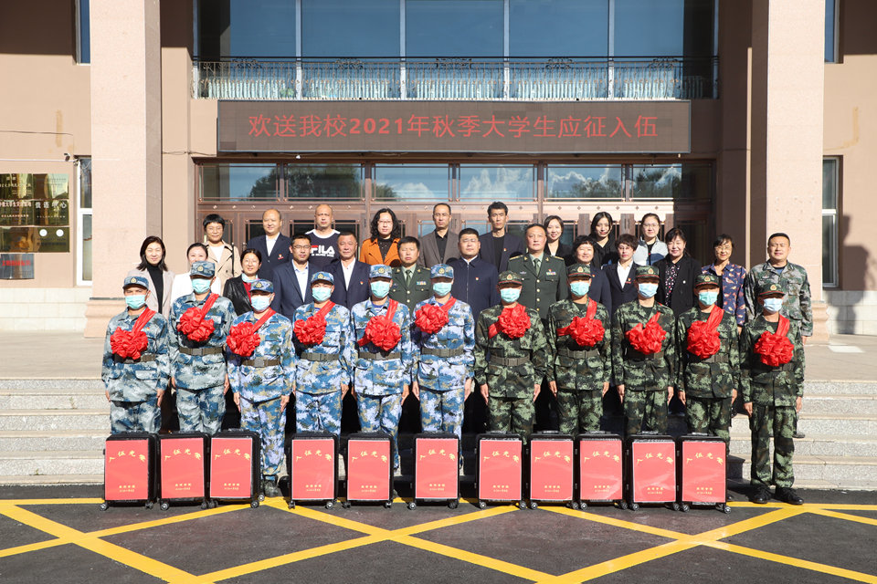 2021年学校积极响应党中央、中央军委的号召,广泛开展大学生应征入伍宣传工作,自今年3月以来,学校所在地共有57名学生踊跃报名参军。经过严格的体检、政治考核,我校11名同学达到入伍要求,被批准光荣入伍,他们将在海军、空军、武装警察部队开启全新的军旅生活。