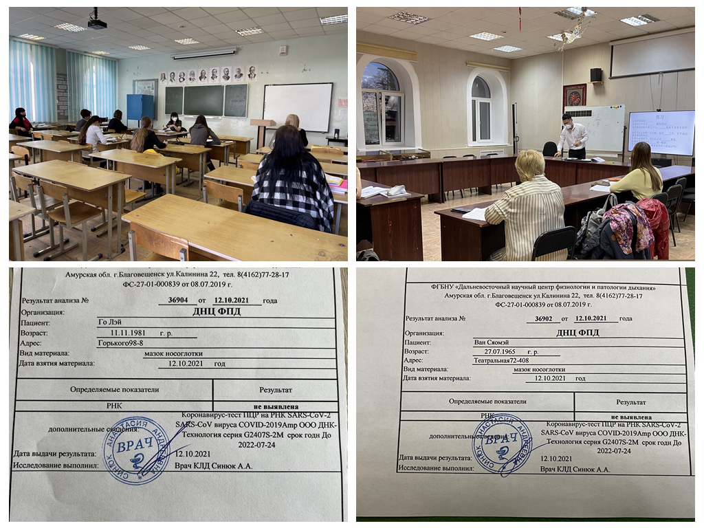 10月11日,中国黑河学院与俄罗斯布拉戈维申斯克国立师范大学合作共建的孔子学院首批赴任教师,于当地时间14:55分正式开启学员面授课程。据悉,我校孔子学院教师团队于10月7日从黑河出发,辗转沈阳、韩国首尔和俄罗斯符拉迪沃斯托克,11日正式抵达俄罗斯布拉戈维申斯克市。布师大孔子学院俄方院长前往机场迎接,在机场外举行了简短而又热烈的欢迎仪式,并为孔子学院教师们送上了提前准备的防疫物品和必备的生活物品。根据俄罗斯疫情管理规定,3人在进行了核酸检测后,迅速投入到孔子学院建设工作中。