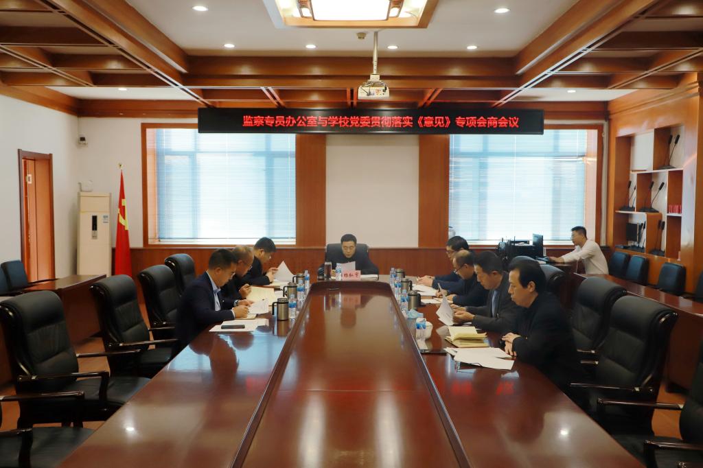 本网讯(特约记者 王琳 摄影 郭瑞)按照省纪委监委的工作部署和要求,10月20日下午,省监委驻学校监察专员办公室与学校党委在明德楼三楼会议室召开贯彻落实《中共中央关于加强对“一把手”和领导班子监督的意见》专项会商会议。会议由学校党委书记杨弘宇主持,党委委员参加会议,学校相关职能部门负责人列席会议。