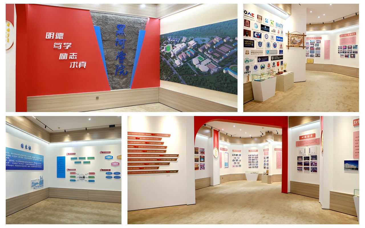 新落成的校史馆空间面积444.4平方米,展厅整体以厚重大气为主要创意思路,融入学校校徽等艺术元素进行设计,在传承优秀校史文化的同时展现学校的生命力、进取力、影响力和创新力。自建立以来,迎来了学校领导、师生员工、离退休老教师、校友、社会各界人士陆续参观。回顾学校发展历程,每个黑河学院人倍感自豪和振奋,展望美好未来,大家更是充满信心和力量。