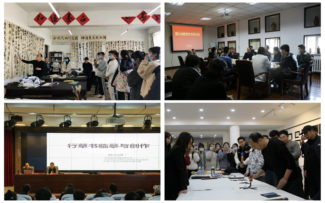 本网讯(特约记者 石娟)10月21日—22日,美术与设计学院聘请中国国家画院研究员、中国书法家协会隶书委员会委员、黑龙江省书法家协会副主席蔡兴洲教授举办《行草书的临摹与创作》讲学、笔会等系列活动。