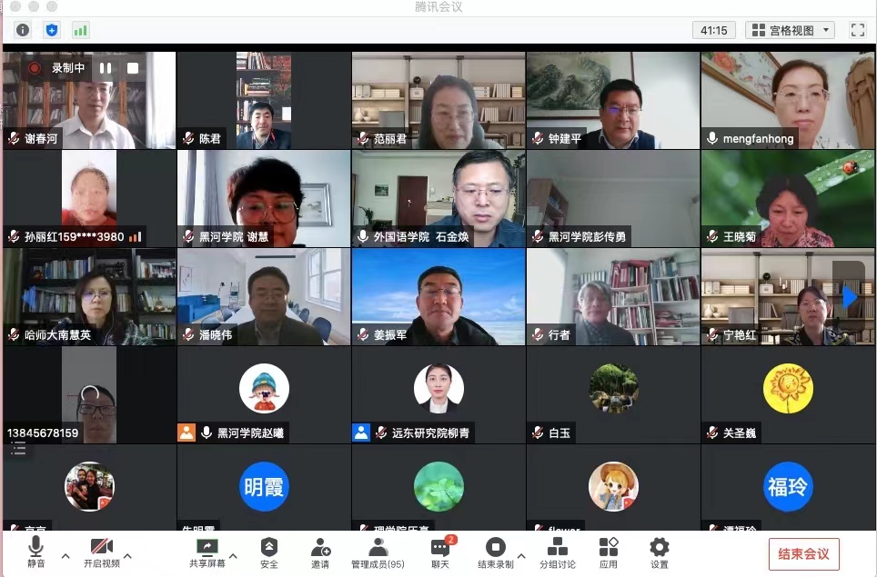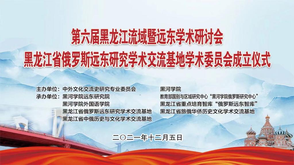 本网讯(特约记者 赵曦)12月5日,由中外文化交流史研究专业委员会、黑河学院联合主办,远东研究院、外国语学院、教育部国别与区域研究中心“黑河学院俄罗斯研究中心”、黑龙江省重点培育智库“俄罗斯远东智库”、黑龙江省俄罗斯远东研究学术交流基地、黑龙江省旅俄华侨历史文化学术交流基地、黑龙江省中俄历史与文化学术交流基地共同承办的“第六届黑龙江流域暨远东学术研讨会”在我校召开。会上举行了黑龙江省俄罗斯远东研究学术交流基地学术委员会成立仪式,党委委员、副校长谢慧与来自校内外100余名专家学者在线上参加会议。会议由远东研究院副院长彭传勇研究员主持。