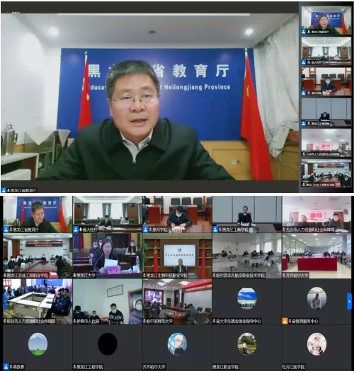 本网讯(特约记者 张珊 摄影 郭瑞)12月14日,黑龙江省教育厅、人力资源和社会保障厅共同召开2022届全省普通高校毕业生就业创业工作网络视频会议。省委教育工委副书记、省教育厅党组成员、副厅长解宗军;省人力资源和社会保障厅党组成员、副厅长左志斌出席会议并讲话,省教育厅二级巡视员、高校学生处处长高铁春主持会议。学校党委书记杨弘宇,党委副书记、校长杨敬民,党委副书记王春雷,副校长许海深在明德楼三楼会议室分会场参会,相关部门、各二级学院负责人、毕业班辅导员及招生就业处全体人员分别在线上线下参加会议。