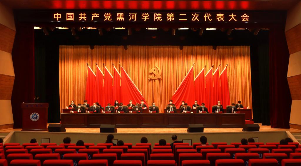 中国共产党黑河学院第二次代表大会,是在中国特色社会主义进入新时代、中国高等教育迈入新阶段、学校发展开启新征程背景下召开的一次十分重要的会议。本次大会的主题是:高举习近平新时代中国特色社会主义思想伟大旗帜,深入贯彻落实习近平总书记关于教育的重要论述,紧紧围绕立德树人根本任务,全面加强党的领导,贯彻落实党的教育方针,坚持改革创新,坚持内涵式、特色化发展道路,奋力开创特色鲜明的综合性、国际化、高质量应用型边疆大学建设新局面。