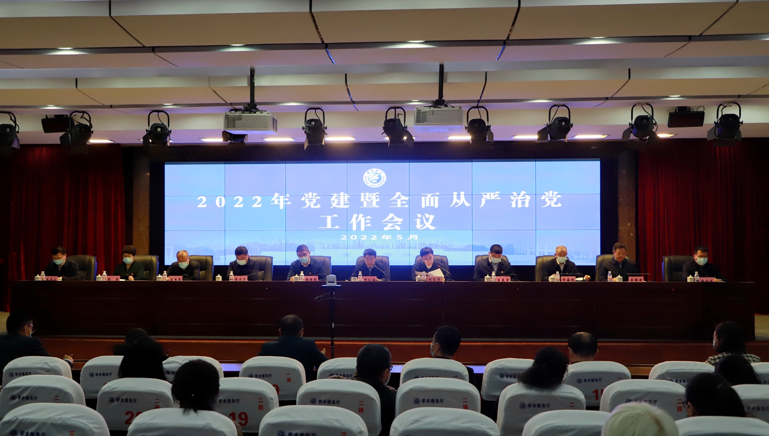 本网讯(记者 关月 摄影 赵宇)5月11日,学校在求知楼报告厅召开2022年党建暨全面从严治党工作会议。党委书记杨弘宇就今年党建和党风廉政建设工作作总体部署。党政领导班子成员出席会议。全校副科级以上干部、各基层党支部书记、全体辅导员、班主任,马克思主义学院全体教师分别在线下线上参加会议。会议由党委副书记、院长杨敬民主持。
