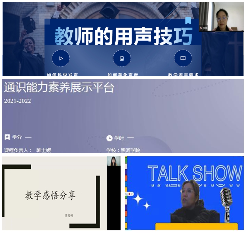 在活动月中,通识教育学院注重通识课程教师素养的全面提升,开展了以“教师能力提升推动课程提质”为主题的培训活动,并依托“智慧树”建立了通识素养能力展示平台,举办教学基本功和教学改革创新“比武练兵”,将教学基本功训练、教育教学创新理念与课程教学实践和立德树人目标紧密结合,致力提升教师的立德树人业务素质和教育教学职业技能,实现以创新教学方式方法,激发学生学习兴趣,以过硬的教学基本功,提高课堂教学质量,推动学生综合素养提升。