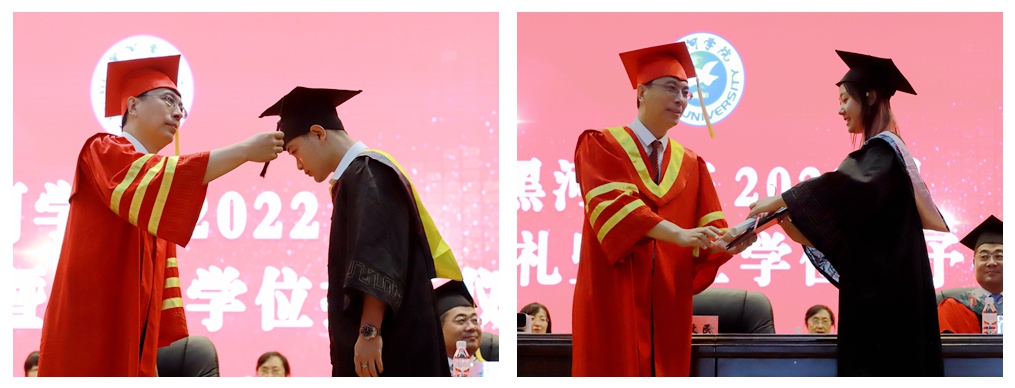 在毕业典礼最激动人心的学位授予仪式中,院长杨敬民为毕业生代表一一拨正流苏、颁发学位证书。杨敬民对即将离校的毕业生们郑重承诺:“无论你们走到哪里,无论从事何种职业,你们都代表着黑河学院,你们都是黑河学院的一份子,要不断擦亮黑河学院这张名片,为母校代言,母校也将永远是你们坚强的后盾。”