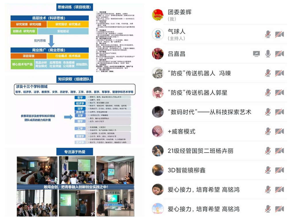 专项辅导会通过线上线下相结合的形式,以培训指导、线上互动等方式进行。特邀科技部中国技术创业协会创新创业专家工作委员会委员、第五届“互联网+”大赛国赛“优秀创新创业导师”、黑龙江省赛“冠军导师”,东北农业大学校团委副书记吕嘉昌主讲。会上,吕嘉昌老师围绕“互联网+”大赛的项目梳理、组建团队、项目题目、项目结构、项目价值以及历届优秀项目剖析等内容进行专题辅导。从多个项目渠道和多种维度分析了该如何进行选题,帮助师生分析了我校在选题中的独特优势;并通过分析优秀案例,对材料评审规则进行了详细解读,指导学生如何撰写商业策划书以及路演PPT制作,为进一步完善和优化项目奠定了良好基础,大家纷纷表示此次辅导非常及时,辅导到位,受益匪浅。