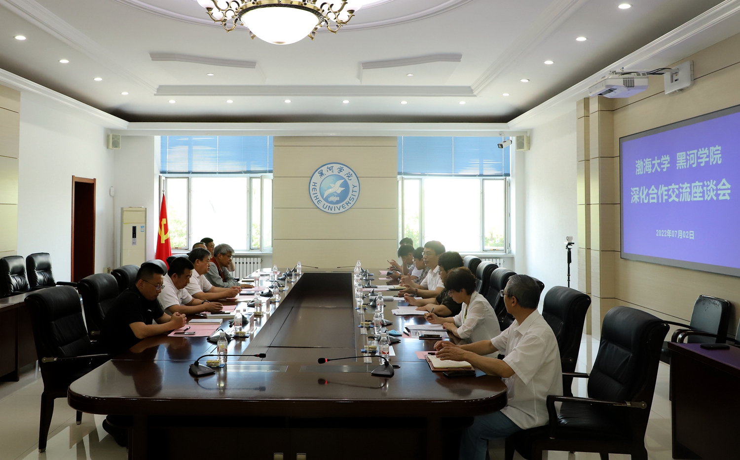 本网讯(记者 赵宇 特约记者 彭传勇)7月2日,渤海大学校长赵晖一行5人到校考察调研,党委副书记、院长杨敬民,党委委员、副院长谢慧及两校教务处、科研处、国际交流与合作处、历史文化旅游学院、远东研究院、办公室相关负责人参加座谈交流。