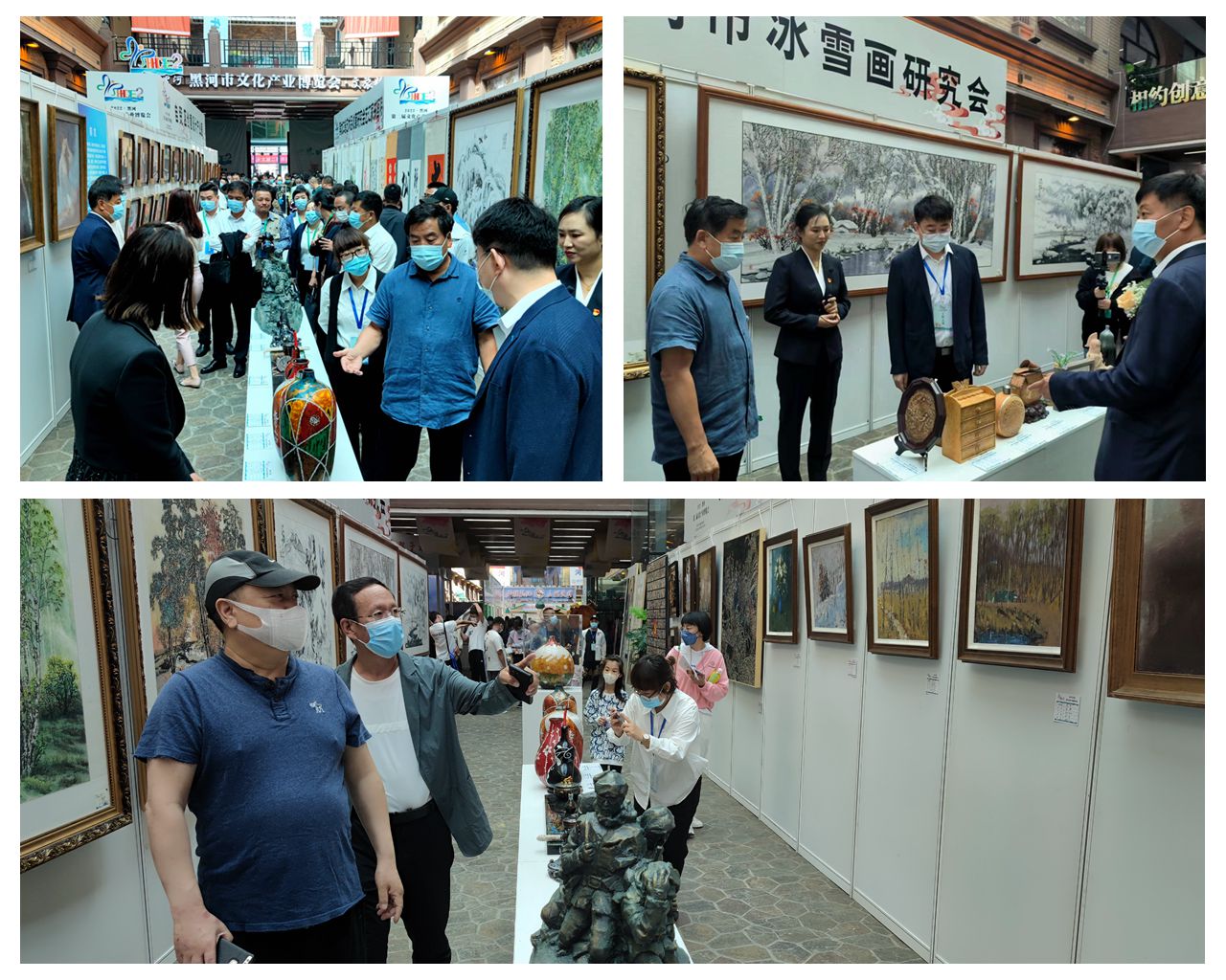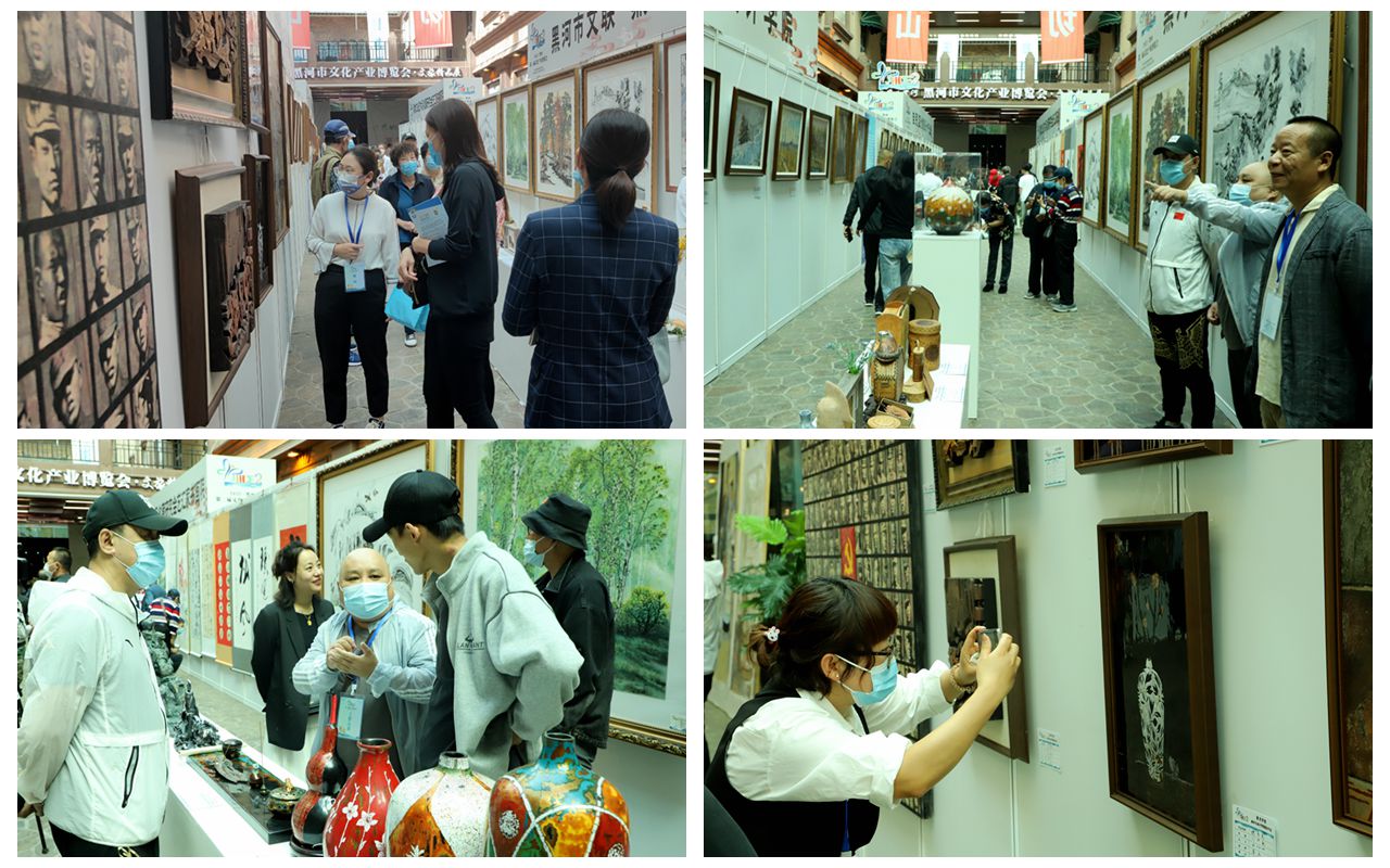将非遗传统工艺推陈出新的创新手工艺,颇具时尚的现代艺术陶瓷漆器,表现北方自然风光、赞美社会和谐、礼赞新时代的绘画……师生精美展作含涉传统与现代、国际与民族、城市与乡村、具象与抽象等多个方面多个角度,全方位展示了学校艺术学科专业特色及实践教学成果,发挥了学校在黑河文创产业发展中的引领作用。