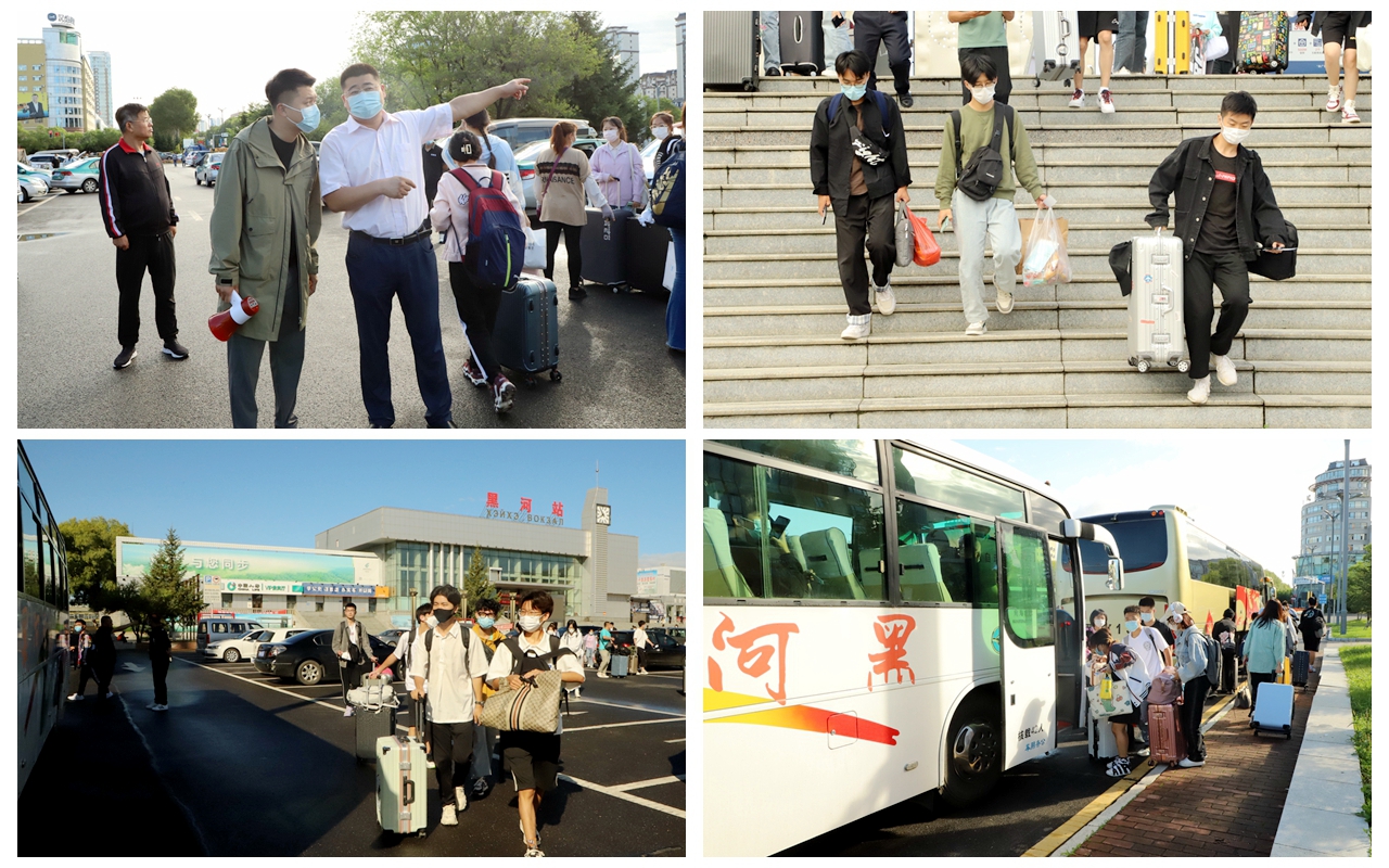 8月18日一早,黑河火车站,来自山东省的20级广播电视编导专业二班的陈慧成为了接站返校的第一位同学。看到王春雷副书记和团委老师的接站身影,听到熟悉的“黑河学院”,她激动万分。