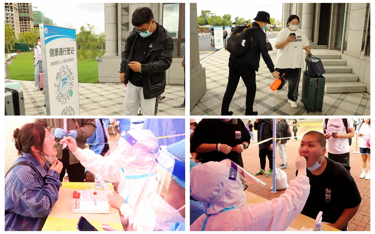 夏尽秋来时,莘莘学子归。校车火车站“点对点”接站、查看健康码、体温检测、行李消杀、更换新口罩……阔别已久的同学们终于回到了思念已久的北疆校园。“当得知能够返校时,心情非常激动。”“今天的校园格外美丽!”“老师们辛苦啦!”即使佩戴着口罩,同学们的笑眼依旧流露出重返校园的欣喜。